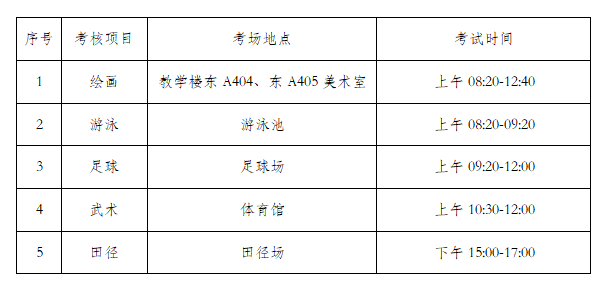 2. 參加下午專(zhuān)項(xiàng)考核的考生須在14:00檢錄,14:30檢錄結(jié)束,15:00開(kāi)始考核。