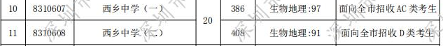 2020年西鄉(xiāng)中學中考錄取分數線