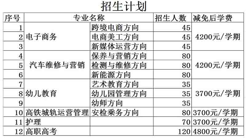 2020年深圳市中特技工學(xué)校春季招生計(jì)劃
