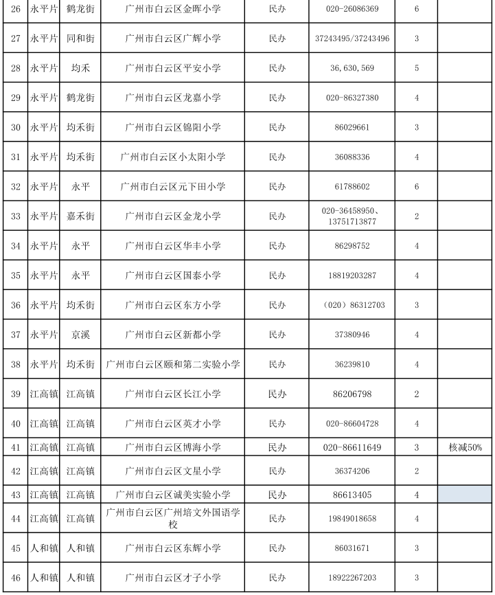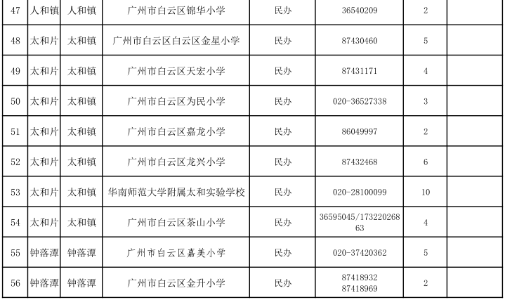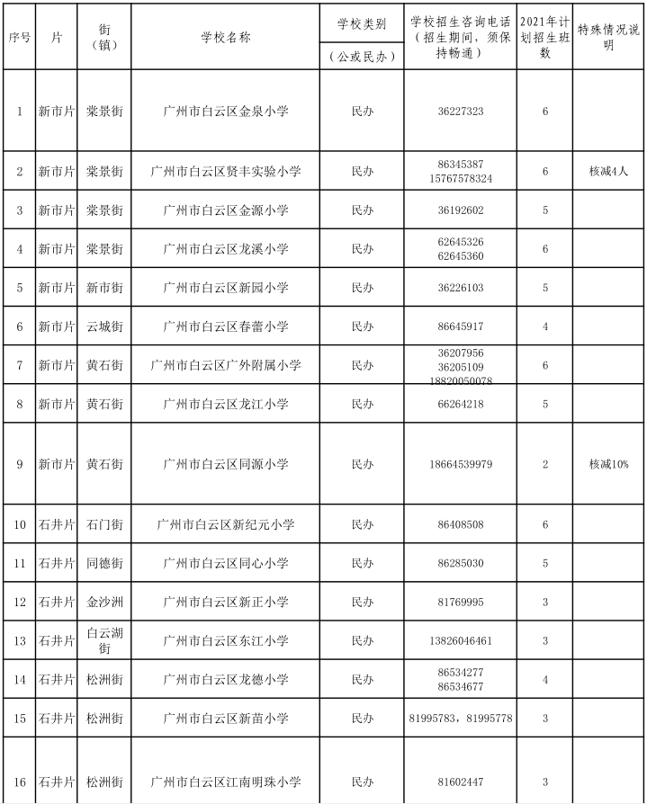 2021年白云區(qū)民辦小學(xué)招生計(jì)劃