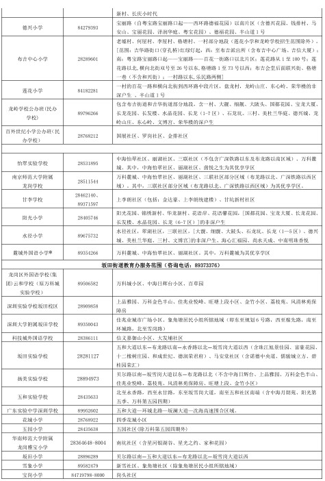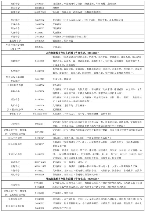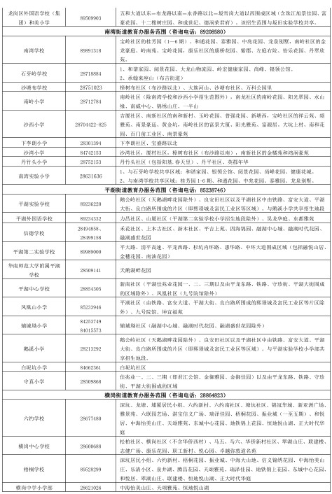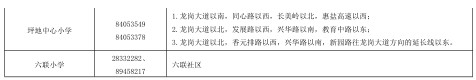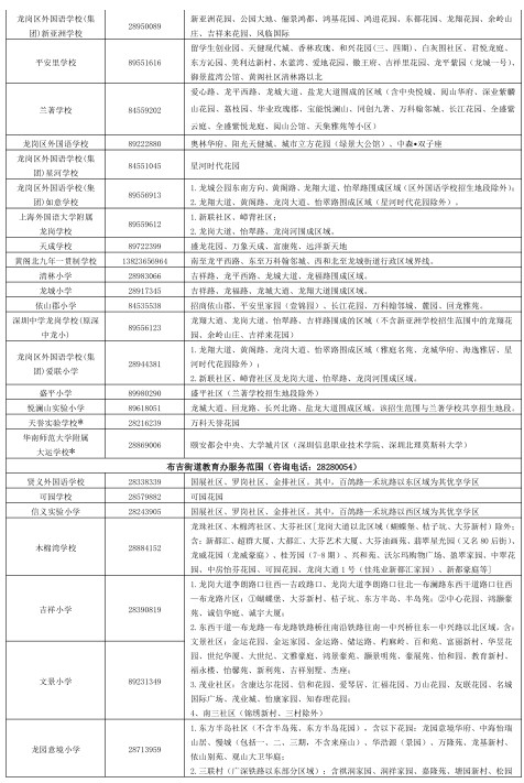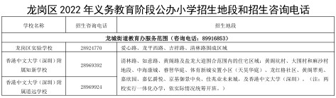 備注:上述帶“*”號(hào)的學(xué)校為龍崗區(qū)政府資助學(xué)校;本指南招生地段劃分僅適用于 2022-2023 學(xué)年度;新建學(xué)校最終是否開班及正式名稱確定,以學(xué)校實(shí)際的建設(shè)進(jìn)度和名稱審批結(jié)果為準(zhǔn);2022 年,部分學(xué)校招生地段文字描述因社區(qū)行政區(qū)劃變化、新住宅入伙及其他因素影響作了部分優(yōu)化。