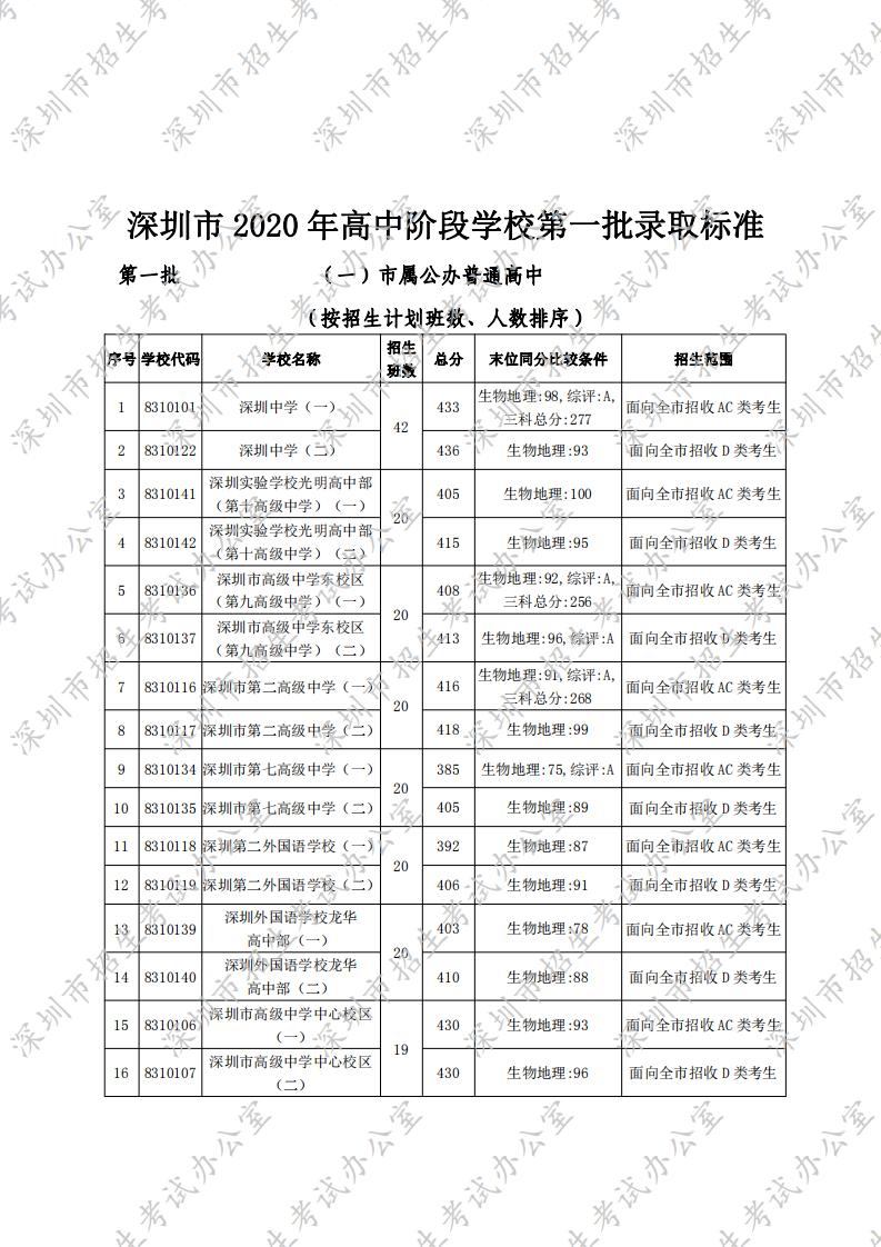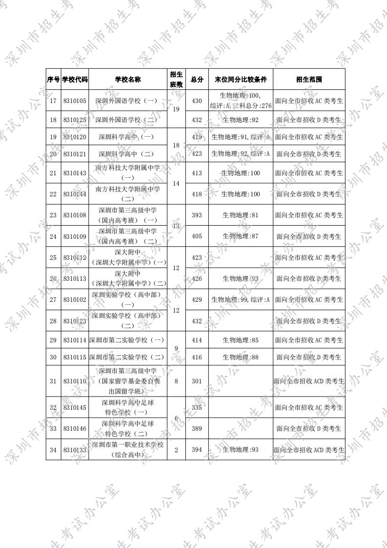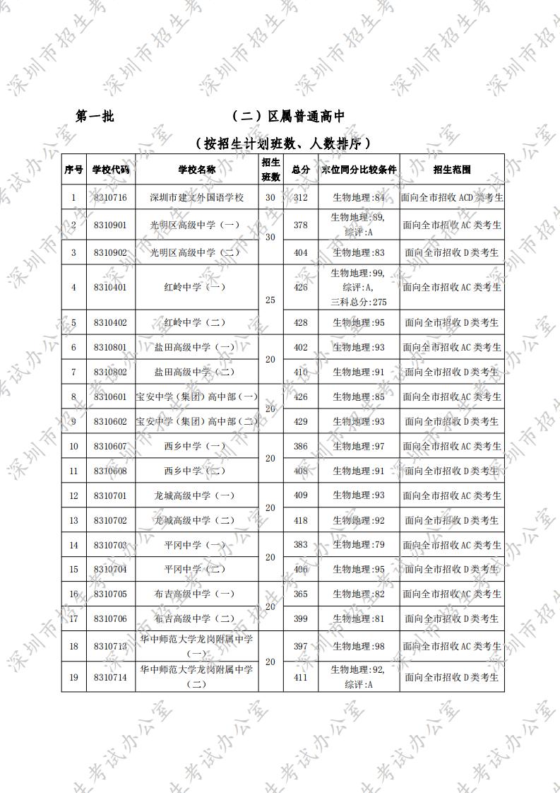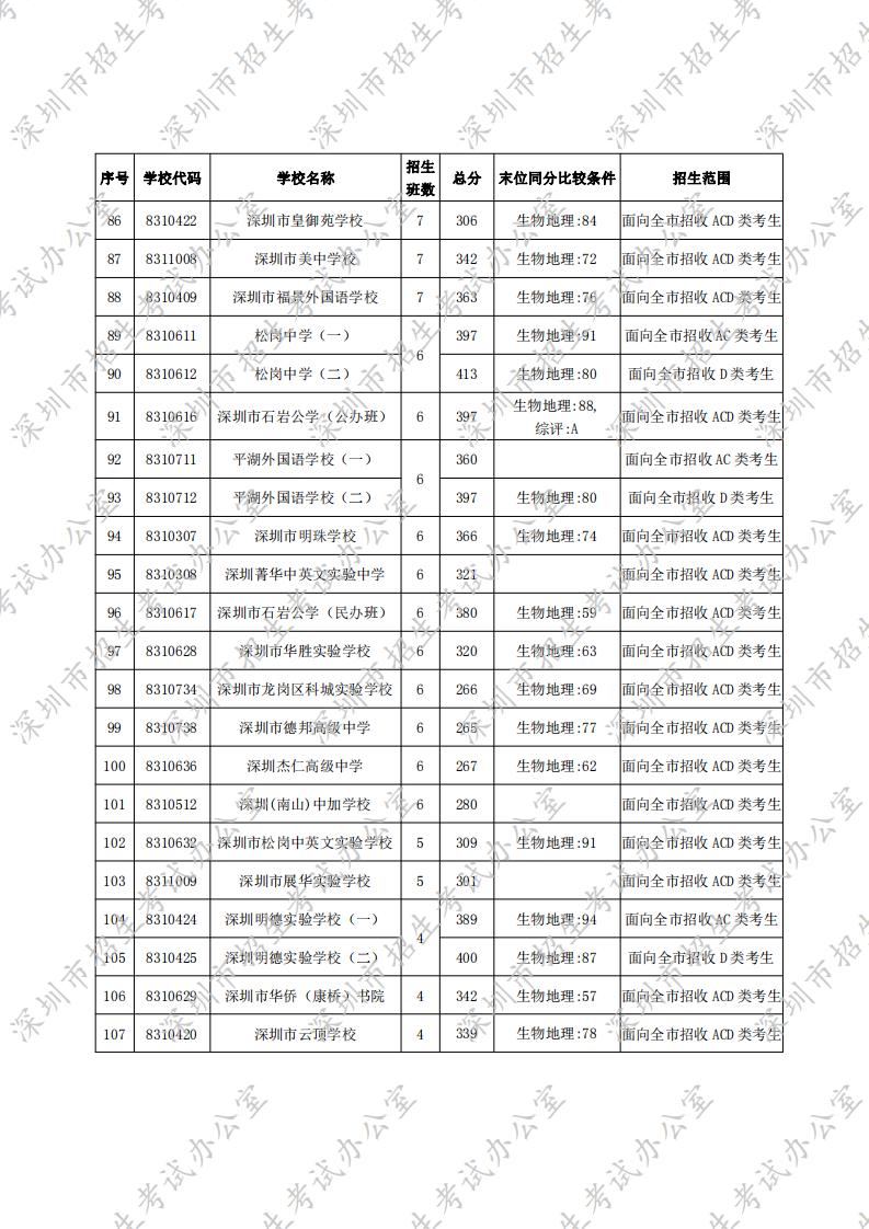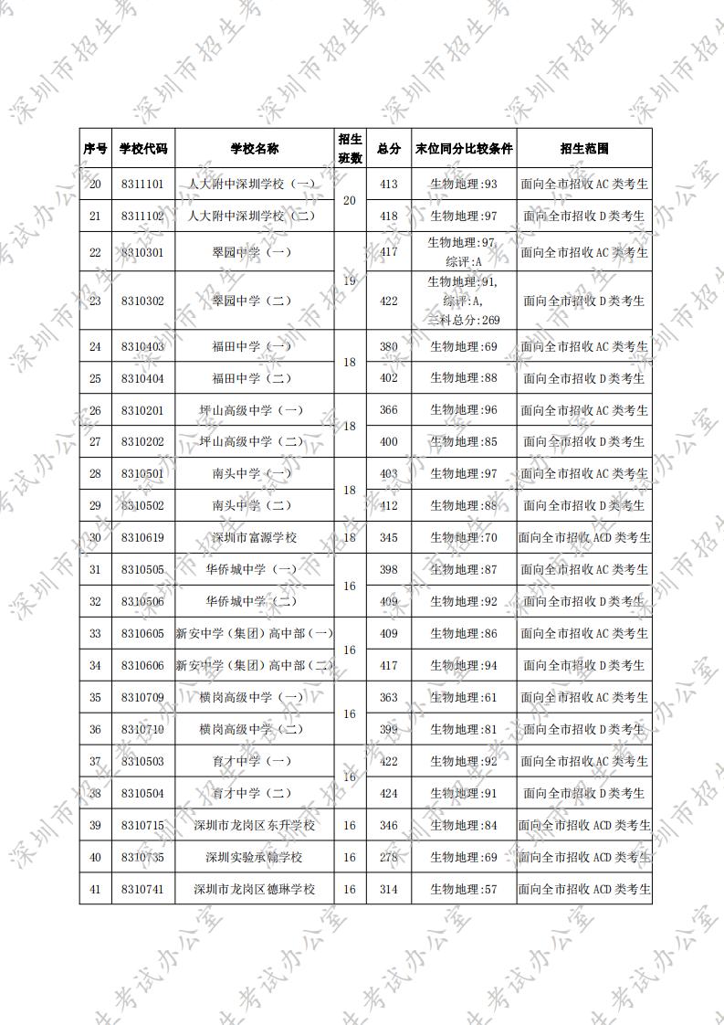 二是普通高中錄取分數(shù)線穩(wěn)中有降。今年是市政府《深圳市高中學校建設(shè)方案(2020—2025年)》實施第一年,全市新增6所普通高中招收高一新生。同時,原有普通高中挖潛擴招,多措并舉實現(xiàn)普通高中學位增量擴優(yōu)。今年我市普通高中招生計劃較去年增加了6486人,其中公辦普高招生計劃增加6047人。隨著招生計劃的增加,大部分普通高中的錄取分數(shù)線較去年有所下降或持平,考生入讀普通高中的機會進一步提高。