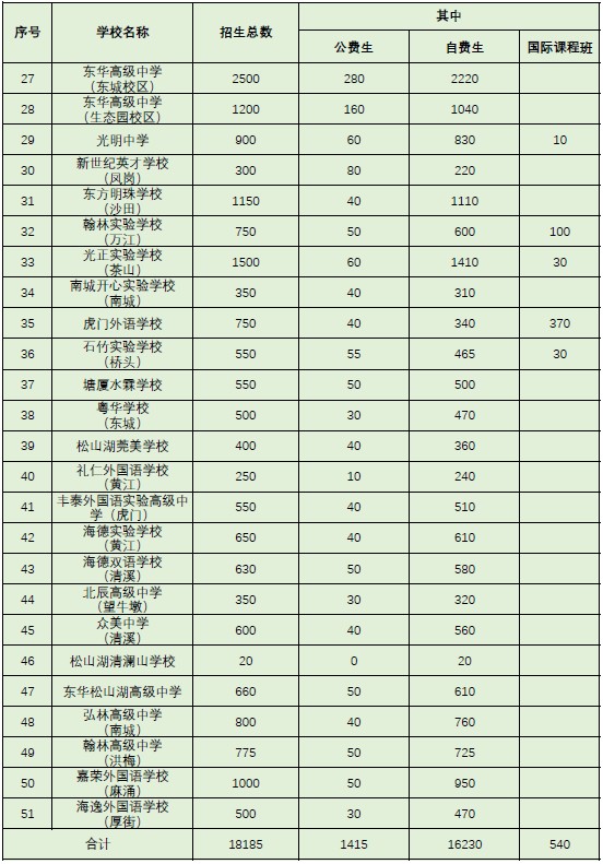 學校名稱 辦學類型 招生總數(shù) 其中 備注 班數(shù) 人數(shù) 面向全市招收本市戶籍考生人數(shù) 面向全市招收隨遷子女人數(shù) ? 1 901 東莞中學 公辦 18 900 875 25 ? 2 917 東莞中學松山...
