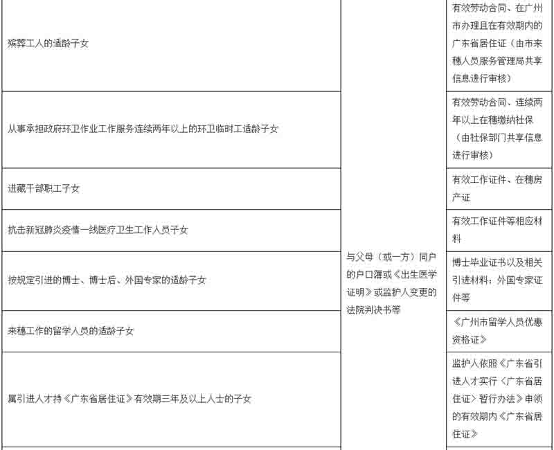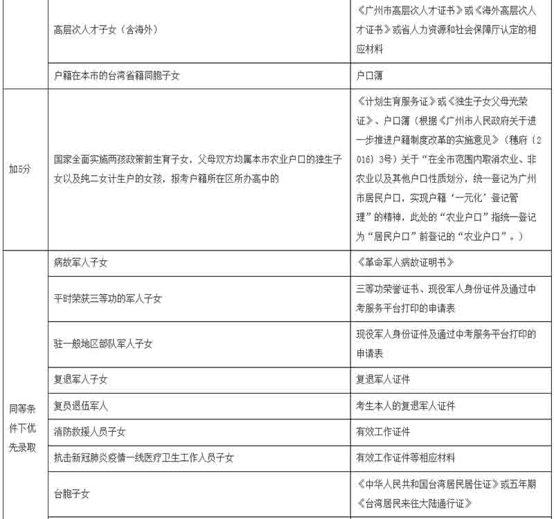 注:1.上述有關(guān)消防救援人員子女的規(guī)定,以《關(guān)于印發(fā)<廣州市消防救援支隊(duì)廣州市教育局廣州市應(yīng)急管理局關(guān)于消防救援隊(duì)伍人員及其子女教育優(yōu)待工作的實(shí)施細(xì)則(試行)>的通知》(穗消〔2020〕8號(hào))為準(zhǔn)。