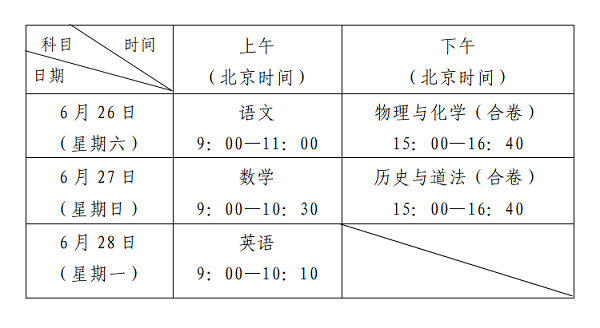 (合卷)考試于6月26日至28日進(jìn)行。