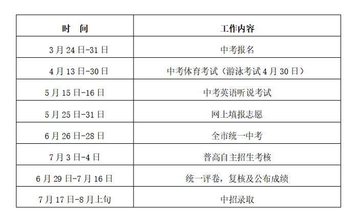 在疫情常態(tài)化防控背景下,今年的中考中招日程回歸常年節(jié)奏,具體安排如下: