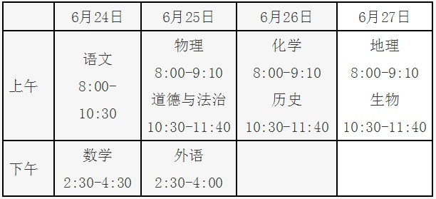 初三年級文化課考試時間為6月24日至26日,初二年級為6月27日(具體時間見附件)。